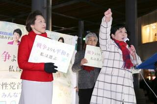 街頭演説する社民党の福島党首(右)と共産党の田村委員長=26日午後、東京都内