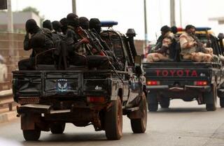 ギニアビサウの首都ビサウでパトロールする軍兵士ら=11月21日(ロイター=共同)