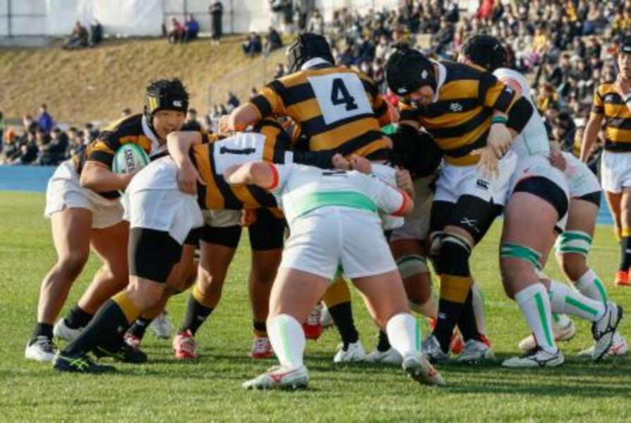 青森山田―慶応志木 後半、モールで押し込む慶応志木の選手=花園