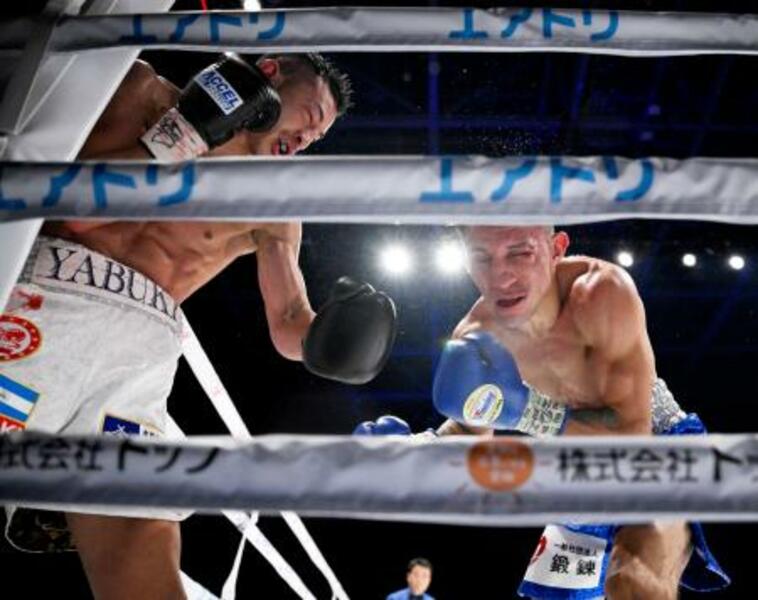 10回、フェリックス・アルバラード(右)を攻める矢吹正道=愛知県国際展示場