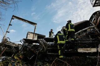 関越自動車道下り線で発生した多重事故の現場=27日午前、群馬県みなかみ町