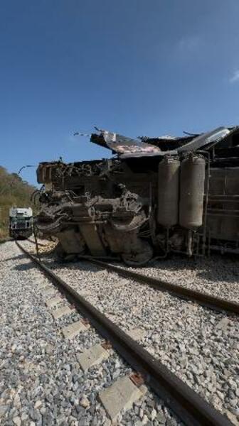 メキシコ南部オアハカ州ニサンダ近くで横転した車両=28日(ロイター=共同)