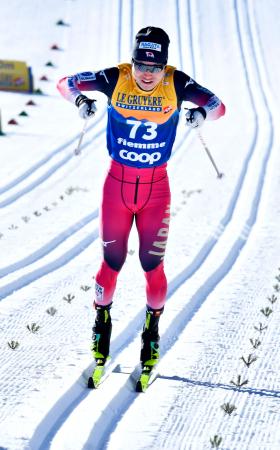 予選で滑走する広瀬崚=イタリア・テーゼロ(共同)
