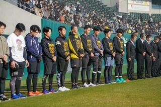 日鉄鋼板SGLスタジアム尼崎で黙とうするプロ野球阪神の新人選手ら=17日午前、兵庫県尼崎市