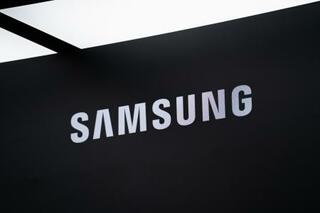 韓国サムスン電子のロゴ=2025年12月、ソウル(ゲッティ=共同)