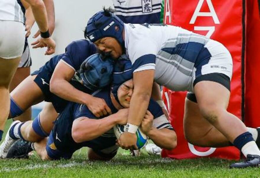 大阪桐蔭―桐蔭学園 試合終了間際、逆転のトライを決める桐蔭学園・喜(下)=花園