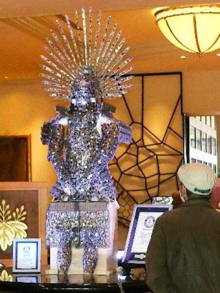名古屋マリオットアソシアホテルに展示されているステンドグラス製の甲冑=7日午前、名古屋市