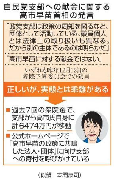 自民党支部への献金に関する高市早苗首相の発言(似顔 本間康司)