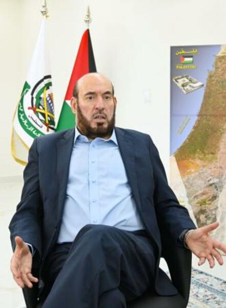 インタビューに応じるハマス幹部ムハンマド・ナザール氏=7日、カタール・ドーハ(共同)