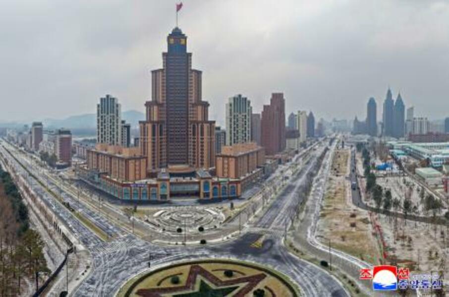 平壌の和盛地区で建設中のニュータウン(朝鮮中央通信=共同)
