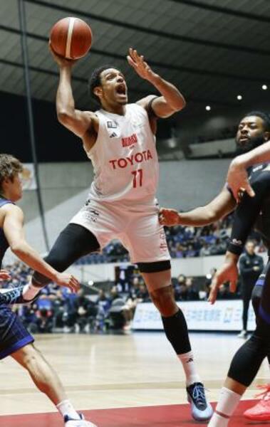 A東京―三河 第1クオーター、シュートを放つA東京のサイズ=国立代々木競技場