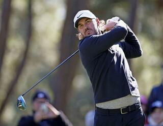 2023年11月18日、ダンロップ・フェニックス第3日、ショットを放つブルックス・ケプカ=宮崎県・フェニックスCC