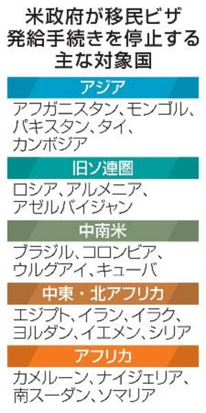 米政府が移民ビザ発給手続きを停止する主な対象国