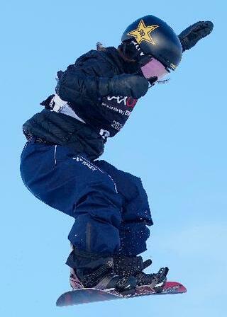 スロープスタイル女子予選1回目の岩渕麗楽=ラークス(共同)