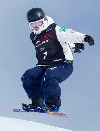 スロープスタイル女子予選2回目の鈴木萌々=ラークス(共同)