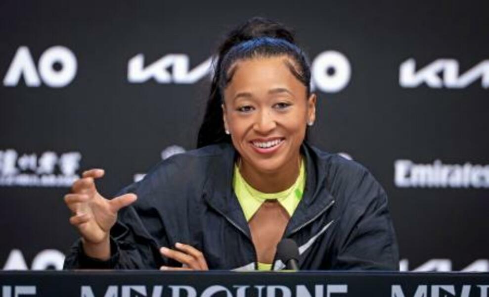 全豪オープンテニスに向けて記者会見する大坂なおみ=16日、メルボルン(ゲッティ=共同)