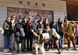 本場所観戦ツアーに参加した訪日客ら=14日、東京・両国国技館