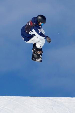 スロープスタイル男子予選2回目の長谷川帝勝=ラークス(共同)