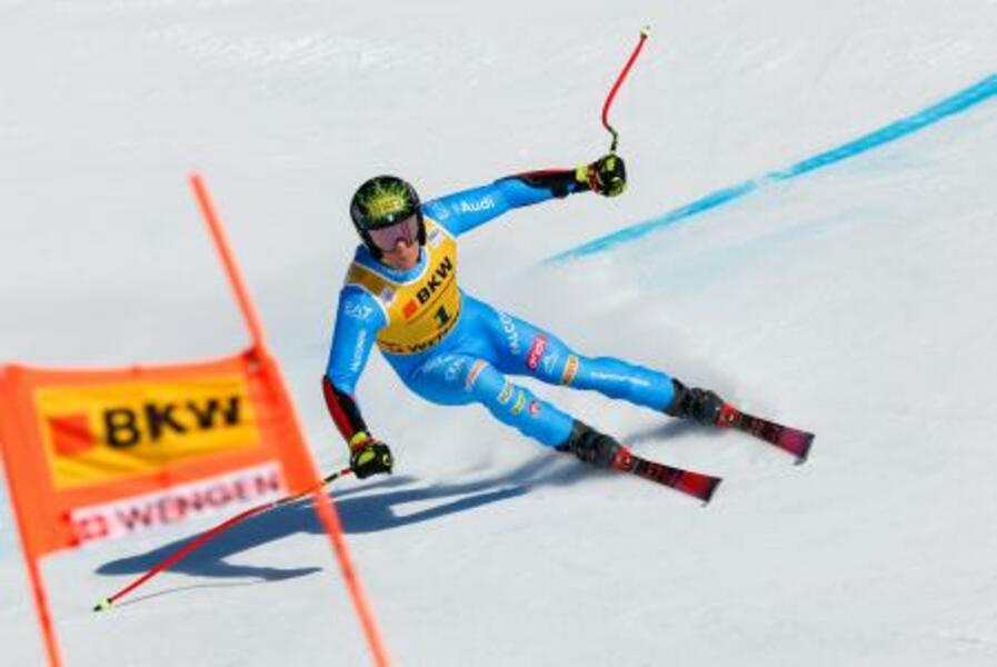 アルペンスキーW杯の男子スーパー大回転に出場したジョバンニ・フランツォニ=16日、ウェンゲン(ゲッティ=共同)
