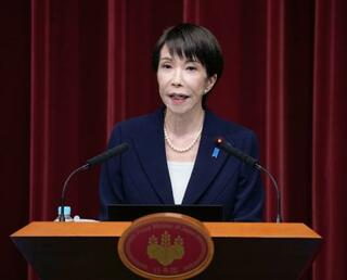 記者会見で衆院解散を表明する高市首相=19日午後、首相官邸