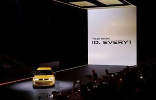 ドイツ自動車大手フォルクスワーゲン(VW)の新型EV=2025年3月、デュッセルドルフ(ロイター=共同)