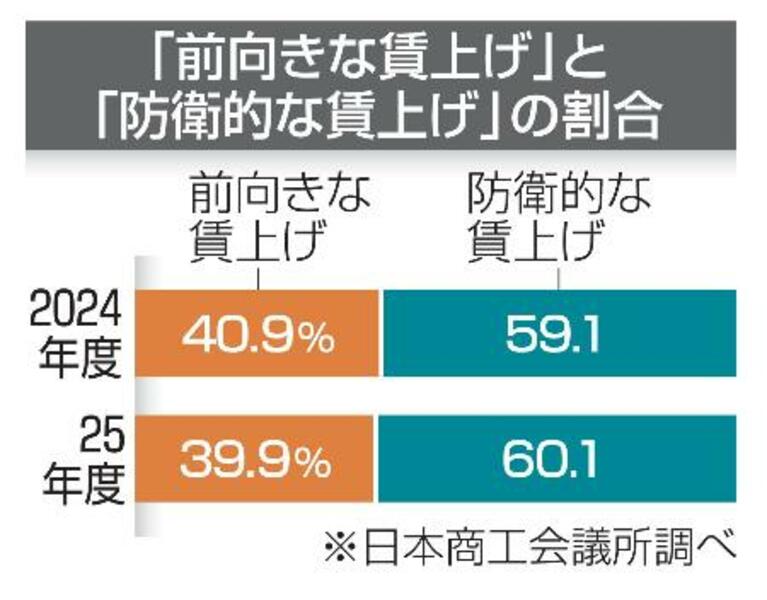 「前向きな賃上げ」と「防衛的な賃上げ」の割合