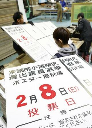 衆院選の公示日に向け、急ピッチで進む選挙ポスター掲示板の製作作業=2026年1月19日、長野県千曲市の「シナノスクリーン工芸」
