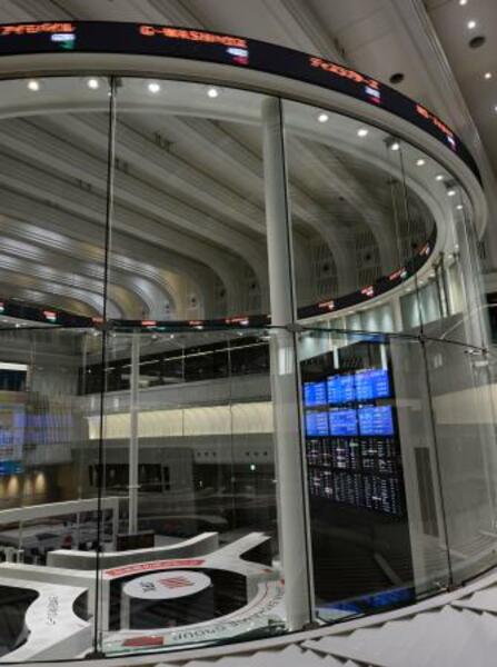 ニューヨーク証券取引所のトレーダー。テレビ画面に映るのはダボス会議で演説するトランプ大統領=21日(AP=共同)