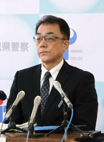 ネイリスト殺害事件の容疑者逮捕について記者会見する茨城県警の坂井誠刑事部長=21日午後、水戸署