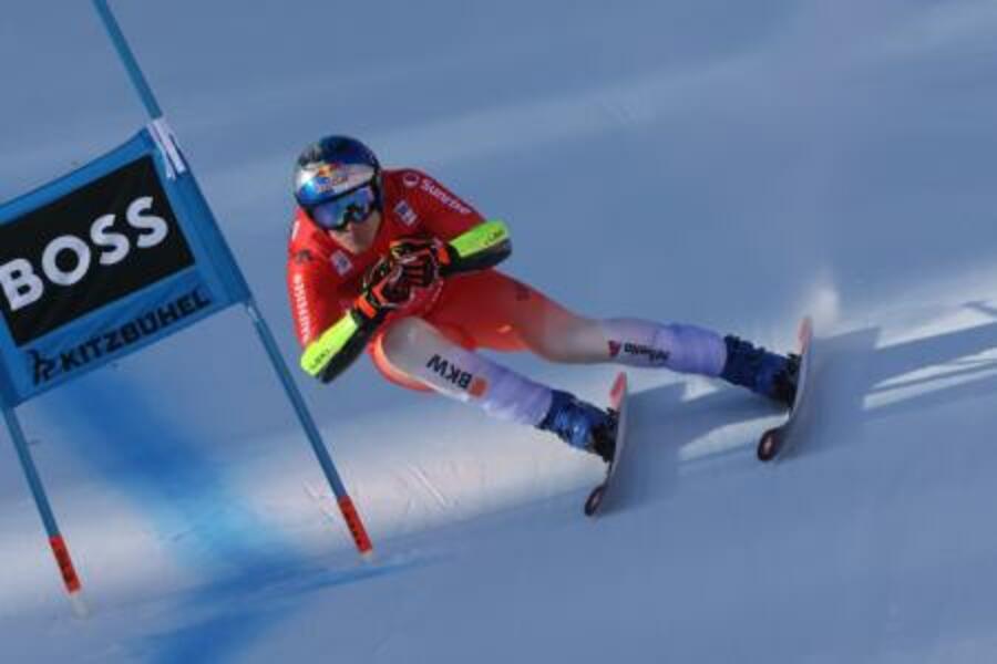 アルペンスキーW杯の男子スーパー大回転で勝利したマルコ・オーデルマット=23日、キッツビューエル(ゲッティ=共同)