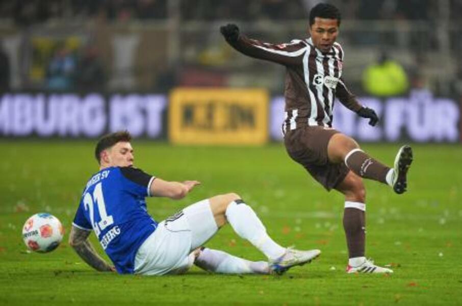 プレーするザンクトパウリの藤田譲瑠チマ=23日、ハンブルク(AP=共同)