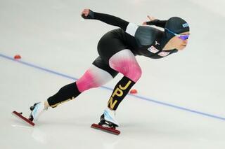 スピードスケートW杯最終戦、女子500mで11位に入った山田梨央=25日、インツェル(AP=共同)