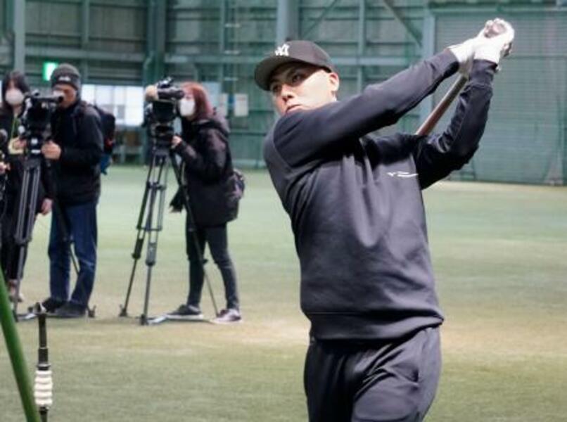 打撃練習で汗を流す楽天・村林=楽天モバイル最強パーク宮城