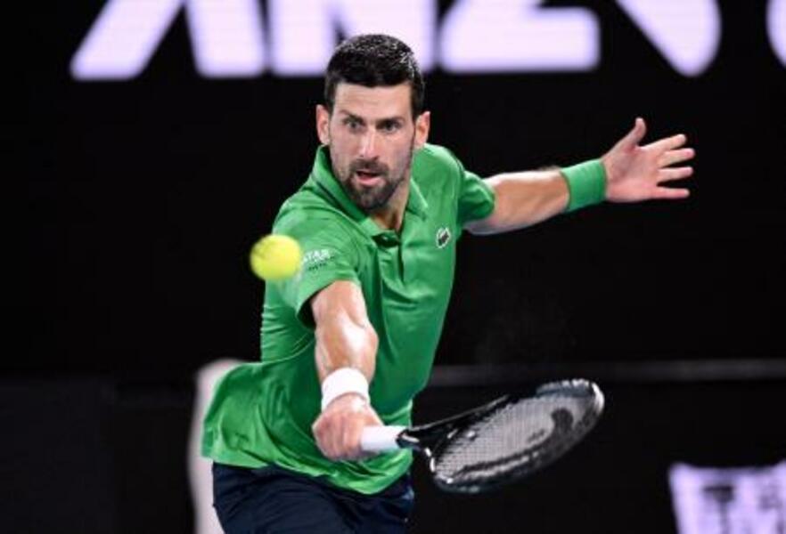 男子シングルス準決勝でプレーするノバク・ジョコビッチ=メルボルン(ロイター=共同)
