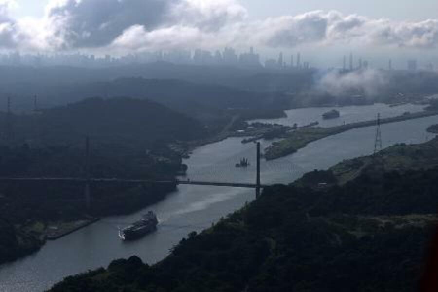 パナマ運河を航行する船(ゲッティ=共同)