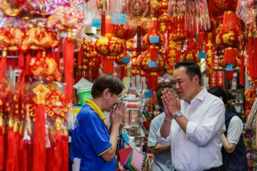タイ・バンコクの中華街で選挙活動をするアヌティン首相=1月20日(ロイター=共同)