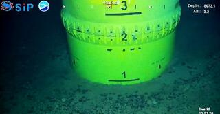 海底下の泥に入った採掘装置=1月30日、東京・南鳥島沖(SIP/海洋研究開発機構提供)