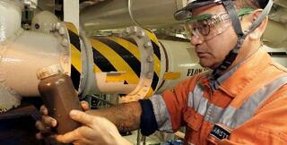 船上に引き揚げられ、ボトルにつめられたレアアース泥=1日、東京・南鳥島沖(SIP/海洋研究開発機構提供)