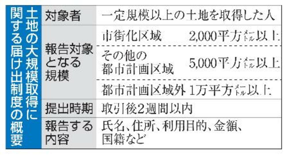 外国人の大規模土地取得、把握へ