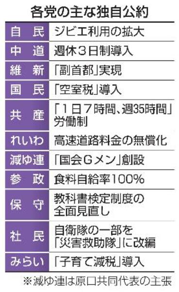 各党の主な独自公約