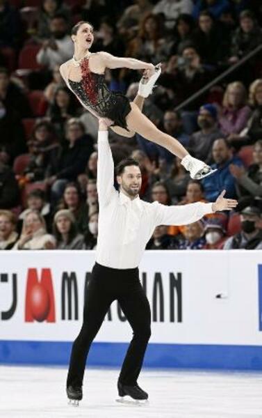 2024年世界フィギュアのペアで優勝したディアナ・ステラートデュデク(上)、マキシム・デシャン組=モントリオール