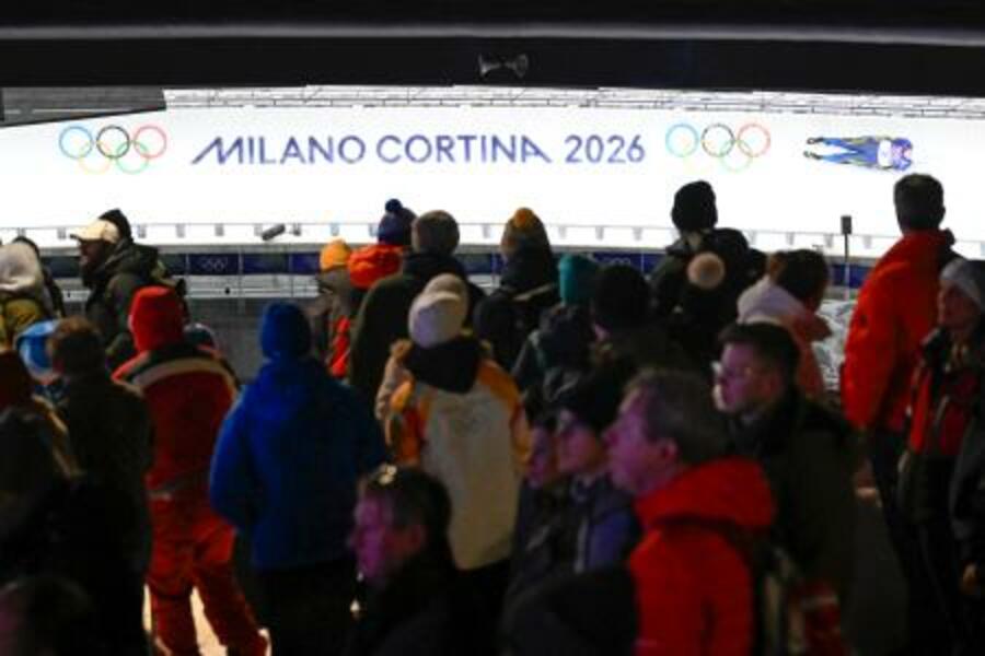 新設されたそり会場で実施されたリュージュ男子1人乗り=7日、コルティナダンペッツォ(共同)