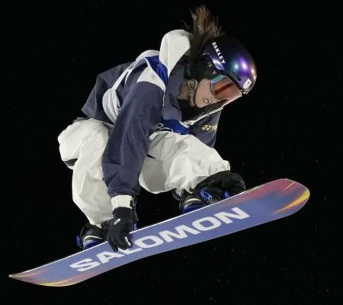 女子ハーフパイプの公式練習で調整する工藤璃星=リビーニョ(共同)