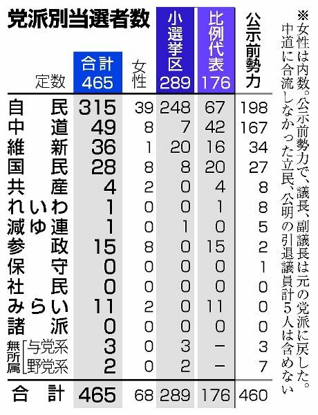 衆院選比例北関東ブロック19議席確定 栃木県関係は中道・輿水氏が5選 …
