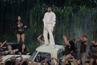 米スーパーボウルのハーフタイムショーに出演したバッド・バニーさん=8日、サンタクララ(ロイター=共同)