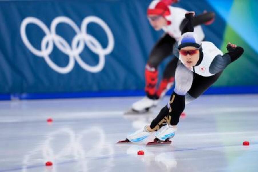 女子1000メートル 滑走する吉田雪乃=ミラノ(共同)