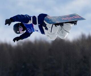 男子ハーフパイプの公式練習で調整する平野歩夢=リビーニョ(共同)