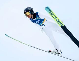 男子個人ノーマルヒル 渡部暁斗の前半飛躍=プレダッツォ(共同)