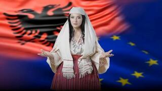 アルバニア議会で演説するAI閣僚の「ディエラ」=2025年9月(ラマ首相のフェイスブックから・共同)