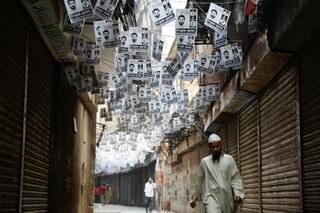 バングラデシュの総選挙を前に掲げられたポスター=11日、ダッカ(ロイター=共同)